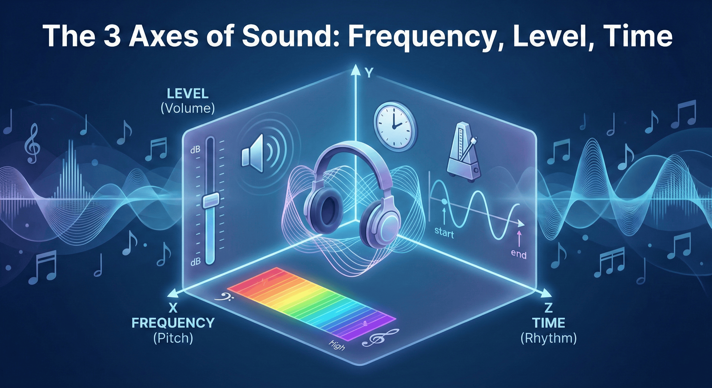 좋은 소리를 이해하려면 무엇부터 봐야 할까요? 주파수, 크기, 시간이라는 3축으로 소리를 읽는 기본 좌표계를 정리합니다.