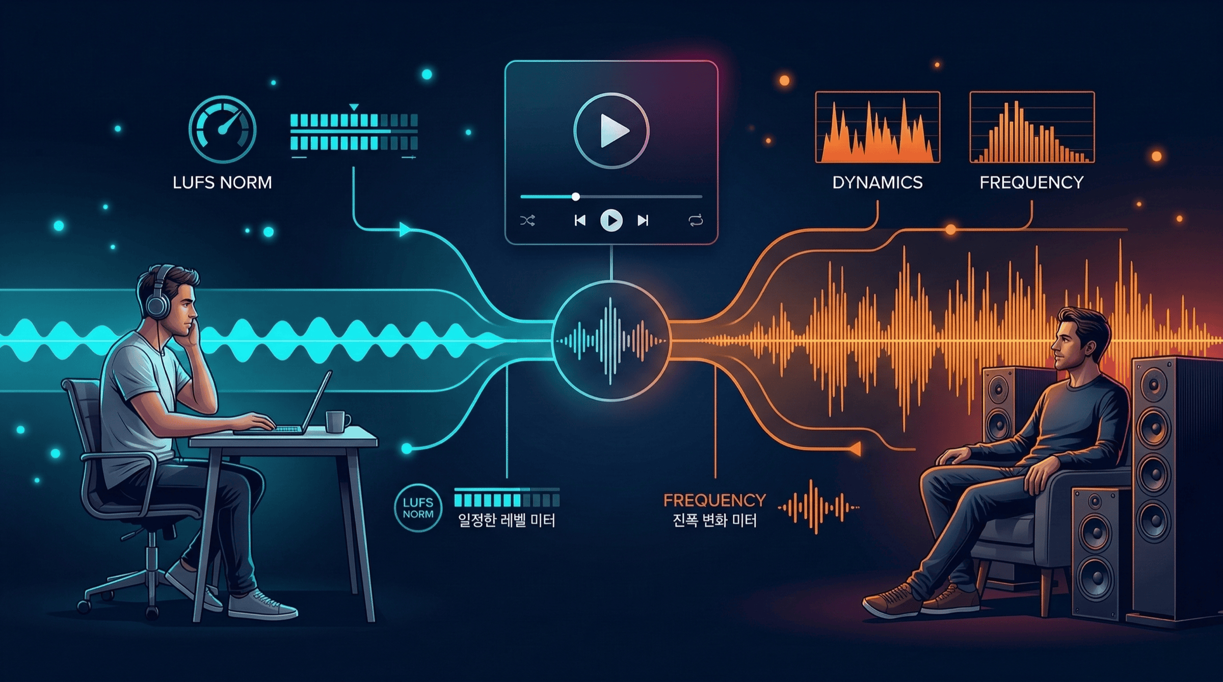 스트리밍 서비스는 노멀라이제이션을 통해 곡마다 다른 음량을 조정합니다. LUFS 측정과 플랫폼별 기준을 이해하고, 같은 LUFS라도 음악이 다르게 들리는 이유를 살펴봅니다.