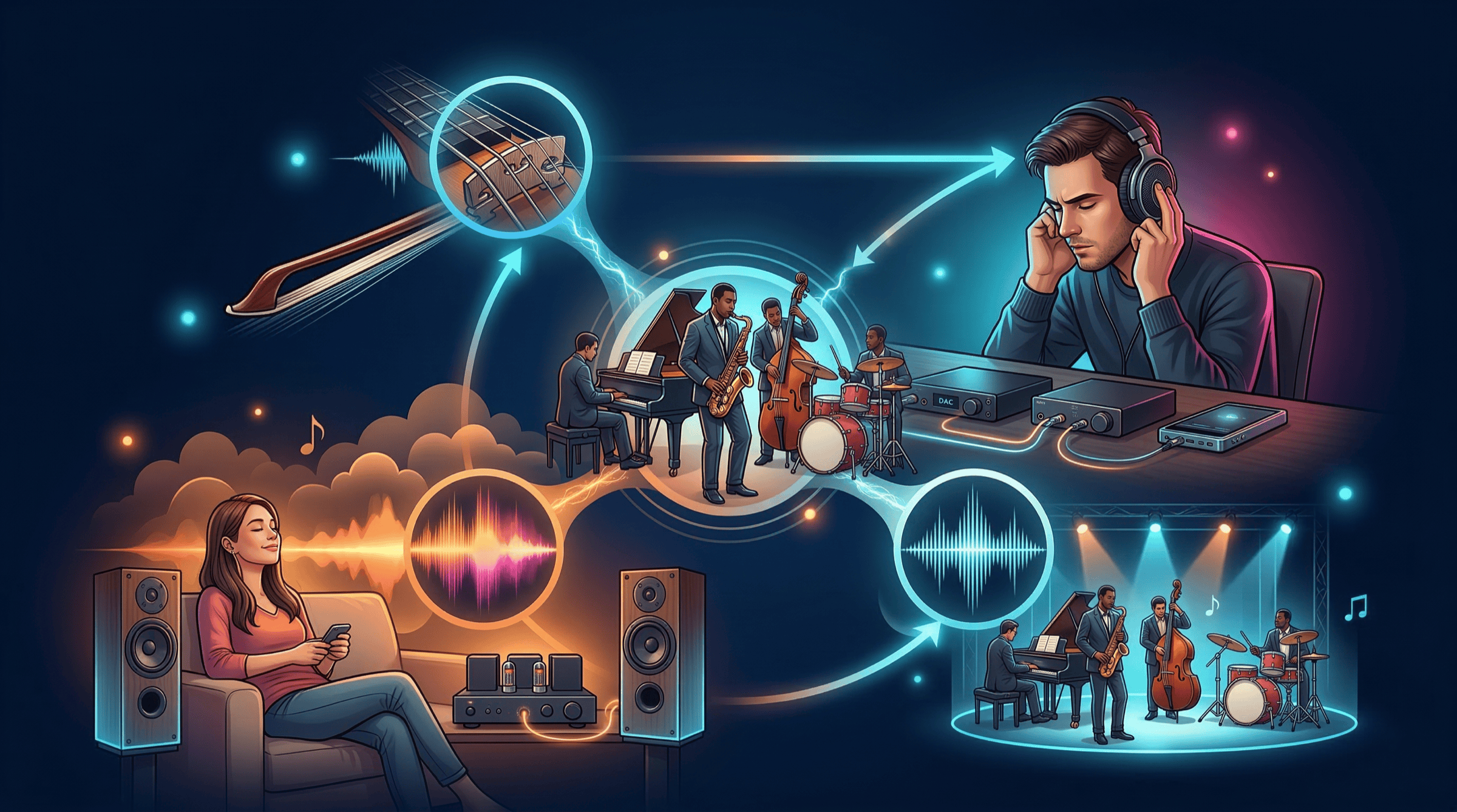 44.1kHz, 96kHz, 192kHz는 무엇이 다를까요? 샘플링레이트의 의미와 실제 청취에서의 영향 범위를 입문자 기준으로 정리합니다.